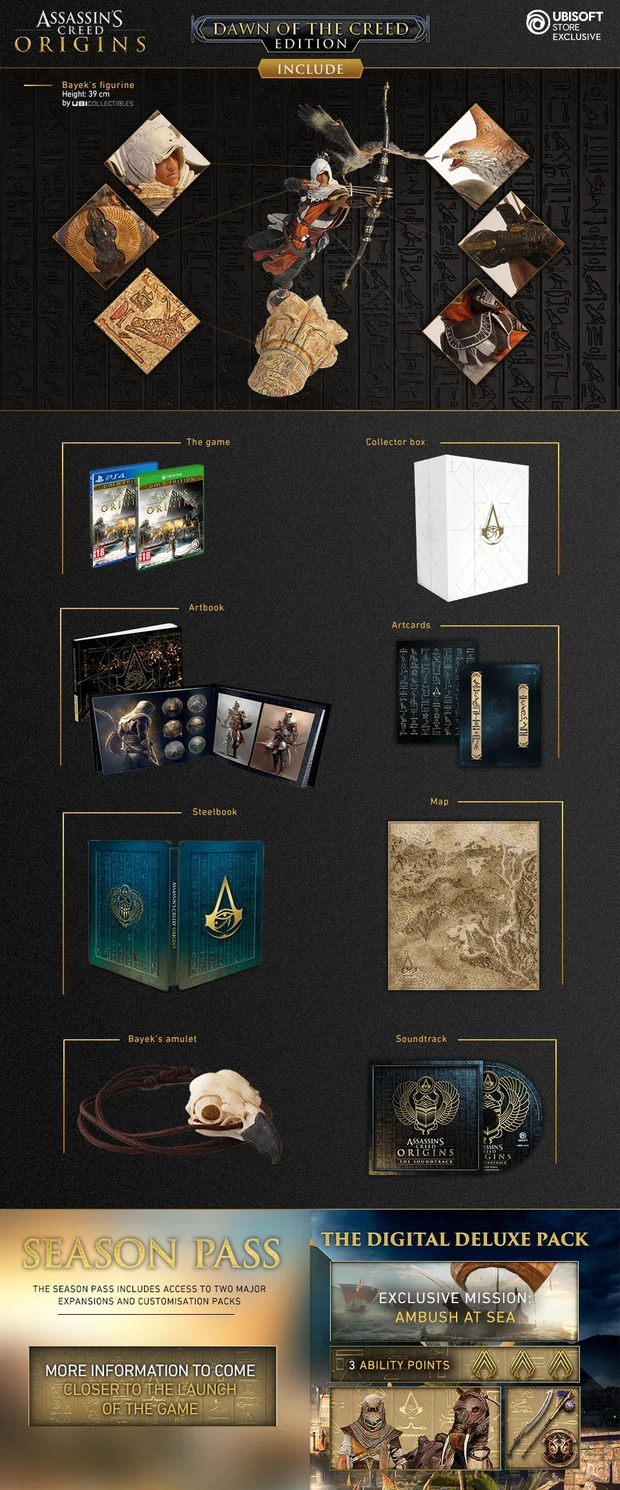 The ultimate edition wasn't enough? Then take a look at the Dawn Collector Edition for Assassin's Creed Origins. This one has a ton of cool collectibles.
