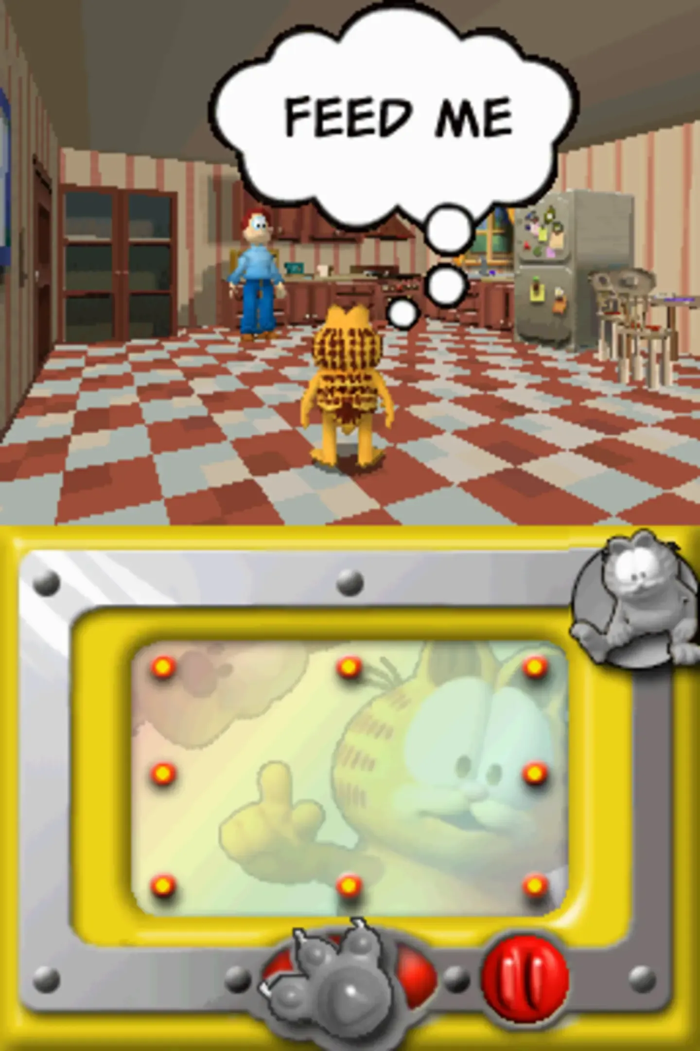 In Garfield Gets Real, players switch between Garfield and Odie as they play through seven areas of the game that all connect from the cartoon universe to the real world. Each area has a key story challenge that progresses the player through the game's chapters while completing 150 smaller tasks that will help them reach the key story challenges.