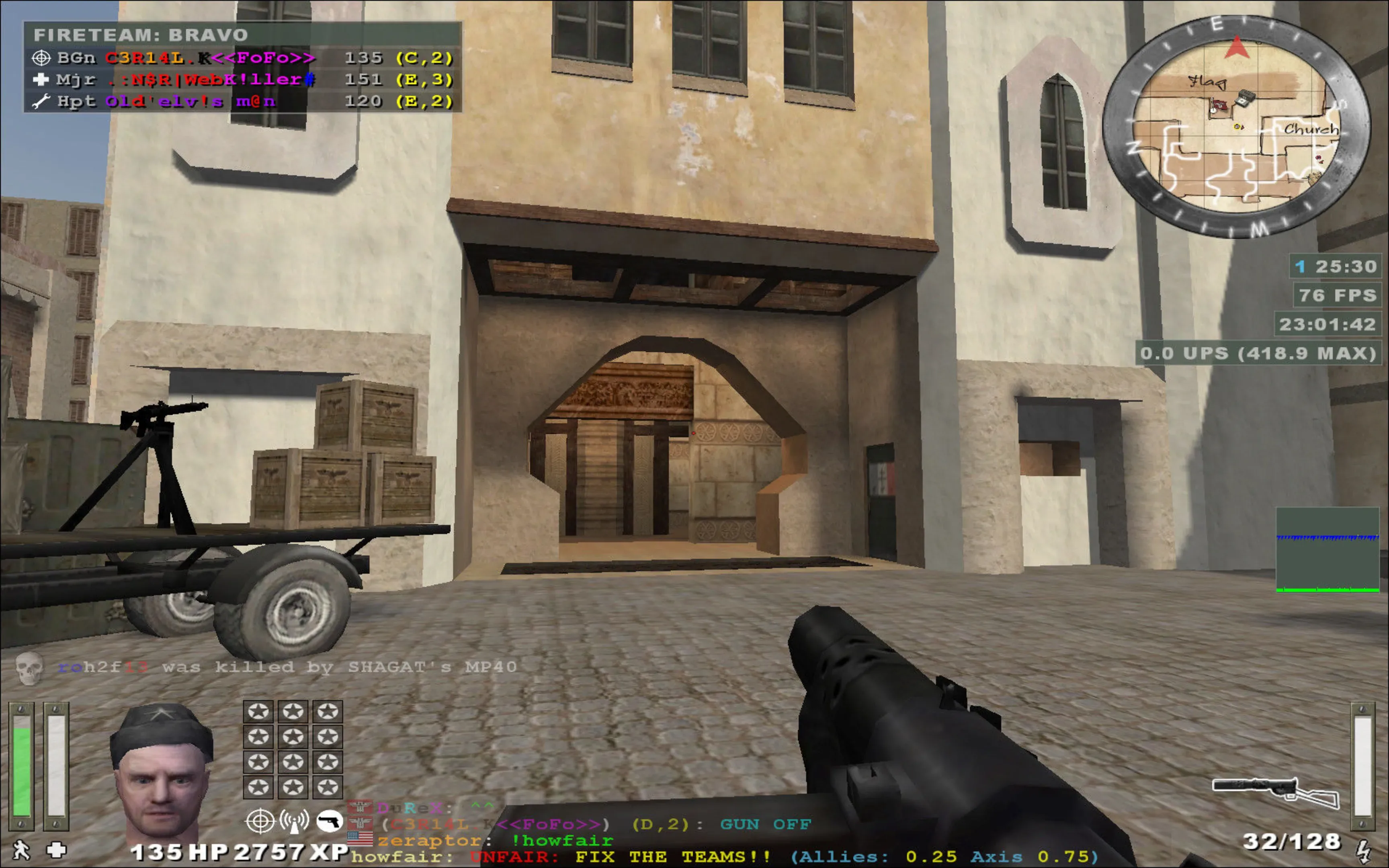 Wolfenstein: Enemy Territory is a multiplayer spin-off to Return to Castle Wolfenstein. In this game, two teams battle each other through a series of three missions that make up a single campaign. There are two campaigns: North Africa and Northern Europe. Within a mission there are objectives that must be completed by each team. These are as varied as escorting tanks, building bridges, stealing gold, or blowing up fuel dumps. Each player picks a character class, such as engineer, soldier, field ops, or covert ops, and then makes use of that class's special abilities, class-specific weapons, and inventory items.